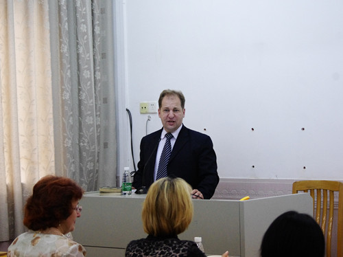 最后,俄罗斯联邦驻广州总领事馆副总领事马克西姆·维克多洛维奇先生为活动总结致辞。他指出,俄罗斯总统梅德韦杰夫近日签署了设立“俄语日”的命令,并在每年的6月6日,伟大的俄罗斯诗人、现代俄罗斯文学语言的奠基人普希金生日这天庆祝这一节日。该命令旨在保存、支持和发展俄语,这既是俄罗斯人民共同的民族财产,也是一种国际交流工具,同时还是世界文明中文化与精神遗产不可分割的一部分。另外,副总领事先生还对广外金宝博