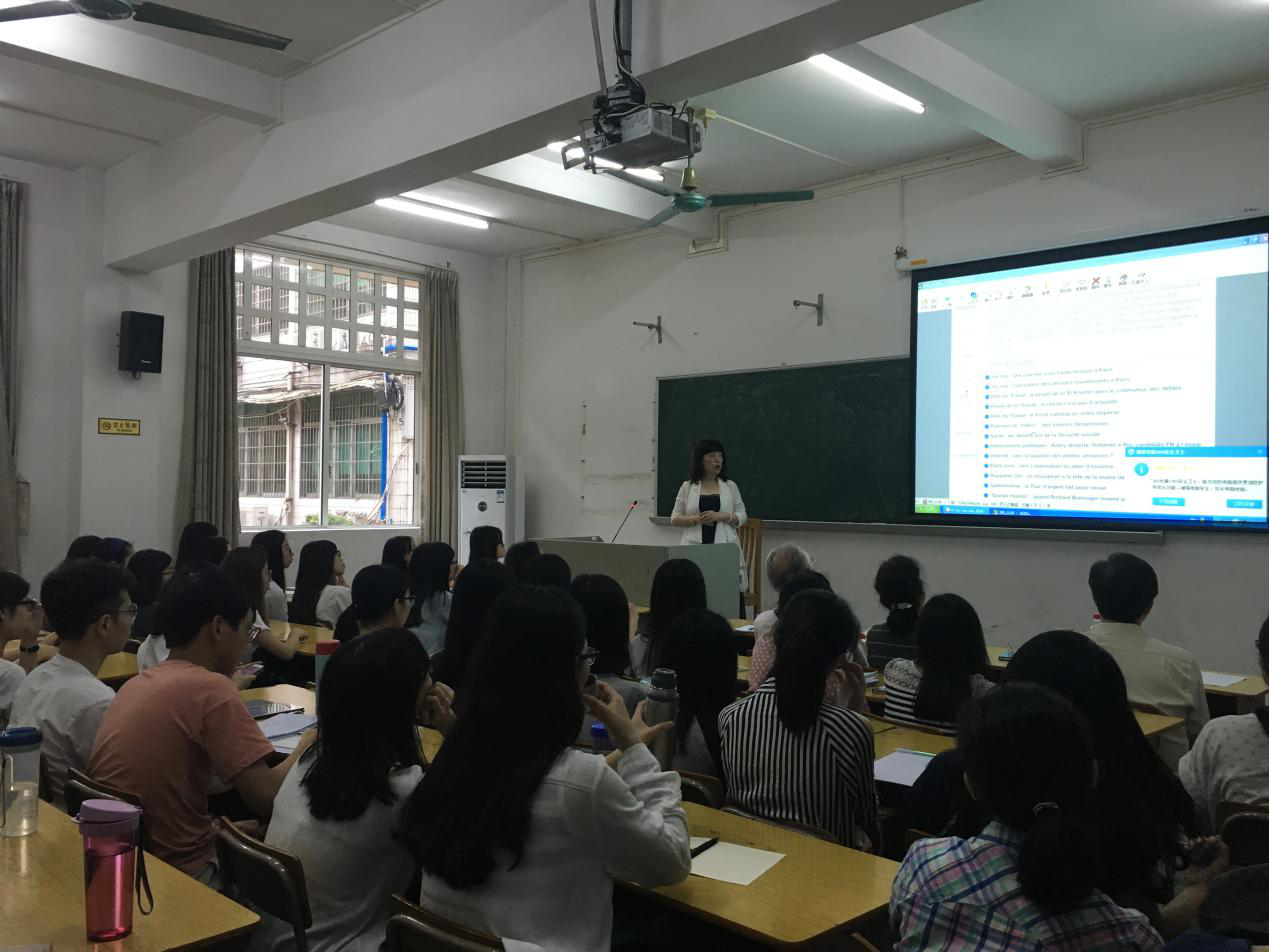 本网讯 继法语MTI系列讲座前三讲获得成功以后,法语系特邀法国电视二台France 2驻京记者站制片人常静来金宝博