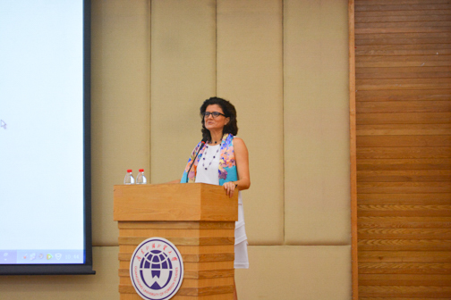 接下来,艾古丽女士进行了讲话。她在讲话中介绍道,华南地区对意大利语的兴趣不断上升,而意大利语已然成为我国学习人数第四多的外语。同时,艾古丽女士还对参与了意大利建筑设计金奖展翻译工作的金宝博