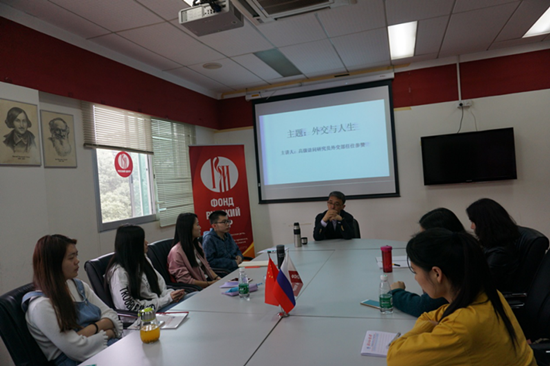 ,为俄语系研究生做了主题为“外交与人生”的讲座。金宝博