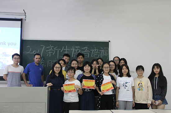 最后,两位评委为前三名选手颁奖,前三名分别是:袁孝铭、钟渝佳、张钰晨。希望同学们能够再接再厉,日后以更饱满的热情投入到塞语的学习中!