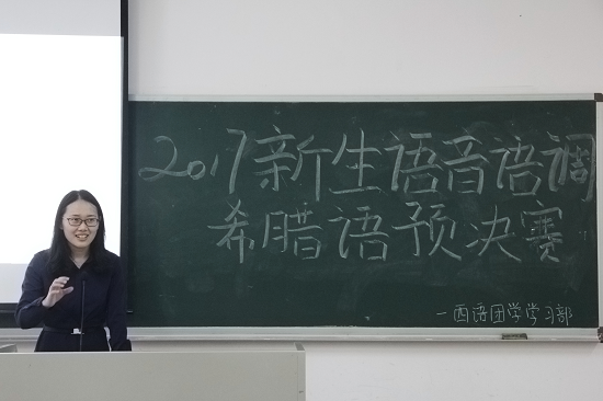 希腊语17级的同学们虽然接触希腊语的时间不长,但都能大胆地站在讲台上展示自己的学习成果。在比赛中,选手们语音纯正、表达流畅,赢得评委和同学们的掌声。最终,经过激烈的角逐,朱天昊、曾惠、梁炜昕同学分别获得一、二、三等奖。
