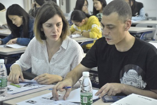 在最后一名同学表演完毕后,工作人员开始了紧张的计分工作。在此期间,塞语系的两位外教老师简要点评了同学们的表现并对本次大赛进行总结。二位老师都对同学们精彩展示表示感谢并鼓励同学们继续努力。