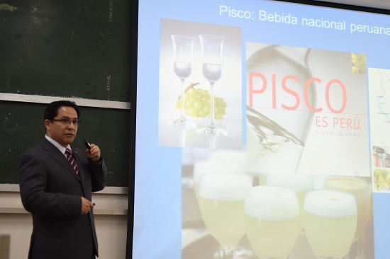 首先,David先生为各位同学介绍了秘鲁的基本情况,内容涵盖了政治、地理、历史、人文等各个方面,让西语系学生对于秘鲁这个遥远的国家有一个大致的了解。随后,他重点介绍了中秘两国源远流长的历史渊源以及两国亲密的外交关系,他表示随着两国外交关系的稳固,未来中秘两国间的贸易来往将更加频繁。之后,David先生向大家介绍了秘鲁丰富的旅游资源和当地美食,让同学们对这个南美国家有着更多向往,总领事也表示希望未来会有更多中国人前往秘鲁去了解这个国家。在这个小课堂的最后,David先生为大家介绍了世界闻名的秘鲁作家MarioVargas Llosa。他简要介绍了略萨的生平经历和多部经典著作,如《La ciudad y los perros》(《城市与狗》)、《La tía Julia y elescribidor》(《胡莉娅阿姨与作家》)等,生动猎奇的人物故事激发了同学们的强烈好奇以及对秘鲁文学的兴趣。
