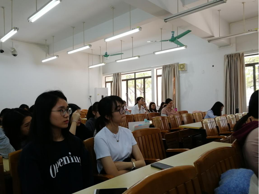 德语系系主任卢铭君老师主持,听讲者主要为德语系大三的学生。