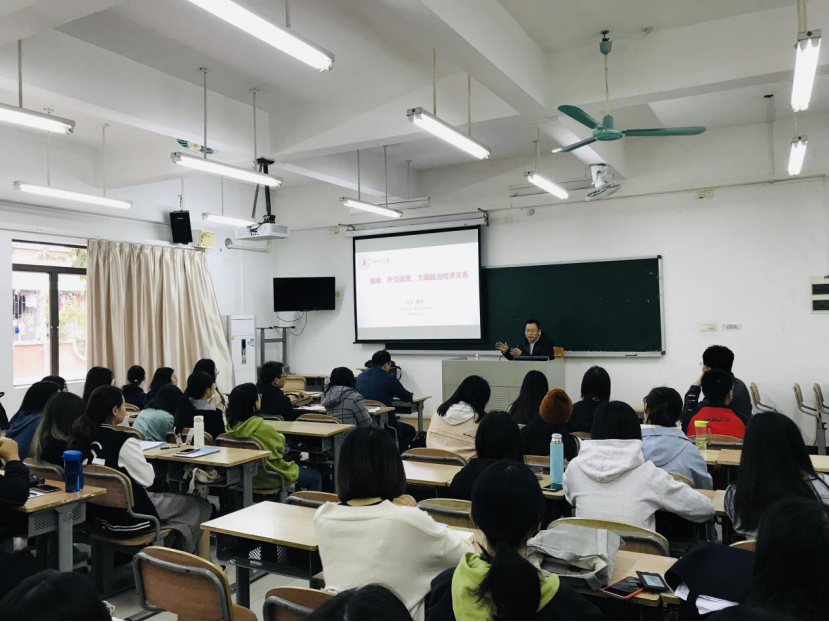 俄语系师生做了题为《地缘、外交政策、大国政治经济关系》的讲座。讲座由金宝博