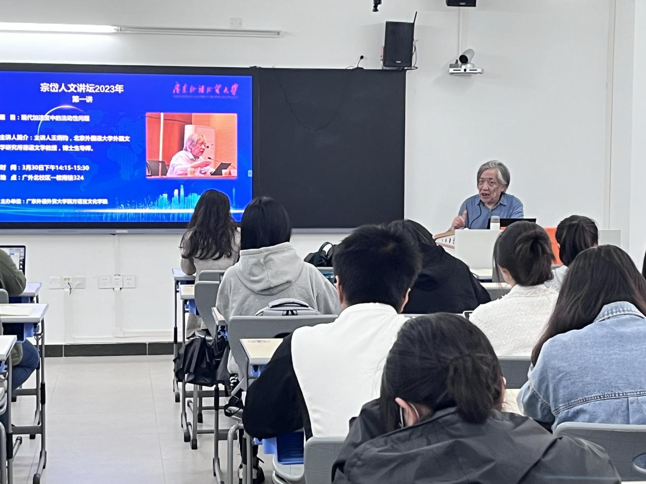 在北校区一教南楼324举办了宗岱人文讲座,北京外国语大学王炳钧教授应邀为金宝博