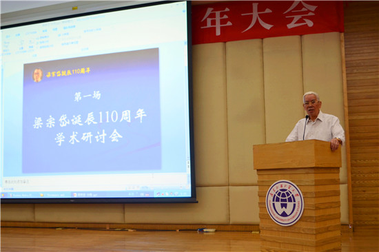 第二个场次的纪念大会在校党委书记隋广军的致辞下缓缓拉开了序幕。之后是由中国外文局副局长,中国翻译协会副会长兼副秘书长黄友义致辞,他向观众们介绍了梁老在中国西方文化教育和跨文化人才培养方面做出的伟大贡献。最煽情的一幕便是梁老长女梁思薇的致辞,与父亲相隔两岸的无奈滴在梁女士的眼中和心里,这段致辞伴随着梁女士对青少年的深情寄望而结束。接下来是梁老学生代表卢岚女士的讲话,介绍了七年的留欧生活对于梁老的人生意义以及表达了发自肺腑的对梁老的怀念与感激之情。紧接着的是黄建华老师《梁宗岱》一书的赠书并致辞的过程,介绍了撰写这本著作的源起及经历,同时在现场对自己的著作进行剖析。