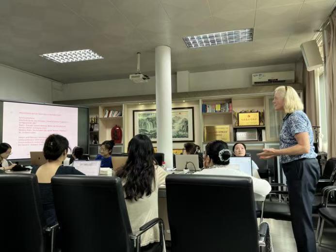 本网讯 2024年9月18日上午10:00,海德堡大学日耳曼语言文学教授、海德堡大学对外德语语言研究所所长Gertrud Maria Rösch受邀在金宝博白云山校区第四教学楼207室为我院德语系师生开展了题为《事实与虚构写作的形式》的学术讲座。本次讲座由张思源老师主持,卢铭君教授致辞,金宝博
