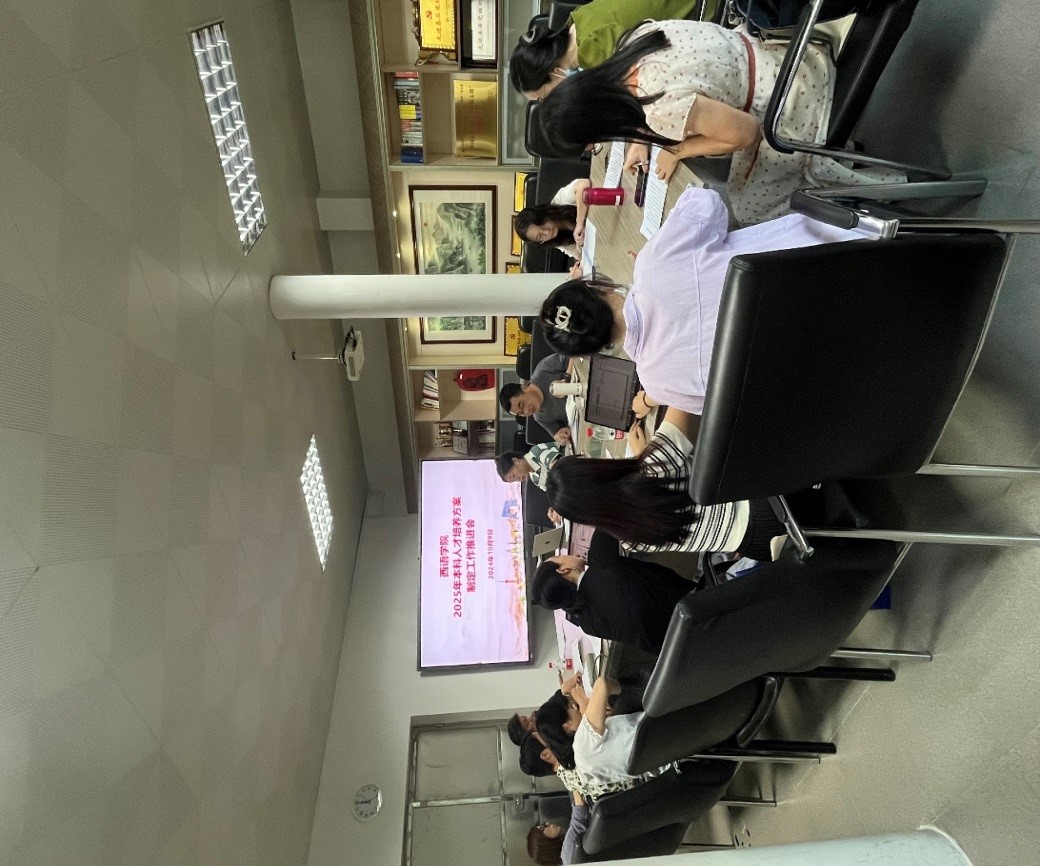 首先,陈星副院长传达了学校有关文件的最新要求,并对各专业系主任和老师们对该项工作的付出和配合表示了感谢。接着,他强调了在接下来的工作中,需要重点补充和完善以下四个要点:第一,为推动本科教育数字化转型,各专业需选择相关课程,在课程大纲中融入人工智能技术和计算机翻译等的运用;第二,各专业须在专业模块遴选至少1门专业必修课,结合本专业具体情况,以多样化形式落实国际化素养学分,并体现在课程大纲内;第三,各专业应将科研诚信和科研伦理教育列入人才培养方案,将学术诚信教育有机融入课程,相关诚信教育及伦理教育的表述应体现在课程大纲中;第四,各专业要将学生职业生涯规划和就业创业相关内容有机融入专业课程教学中,相关具体细则将于后续跟进。
