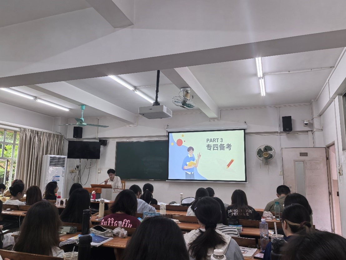 在升学话题上,谢炜同学分享了自己对于保研的见解,并详细地介绍了保研流程,提供了具体的时间节点供大家参考。刘飞同学则分享了自己的备考心得,鼓励大家在语言学习的道路上勇敢面对挑战,坚守语言初心。