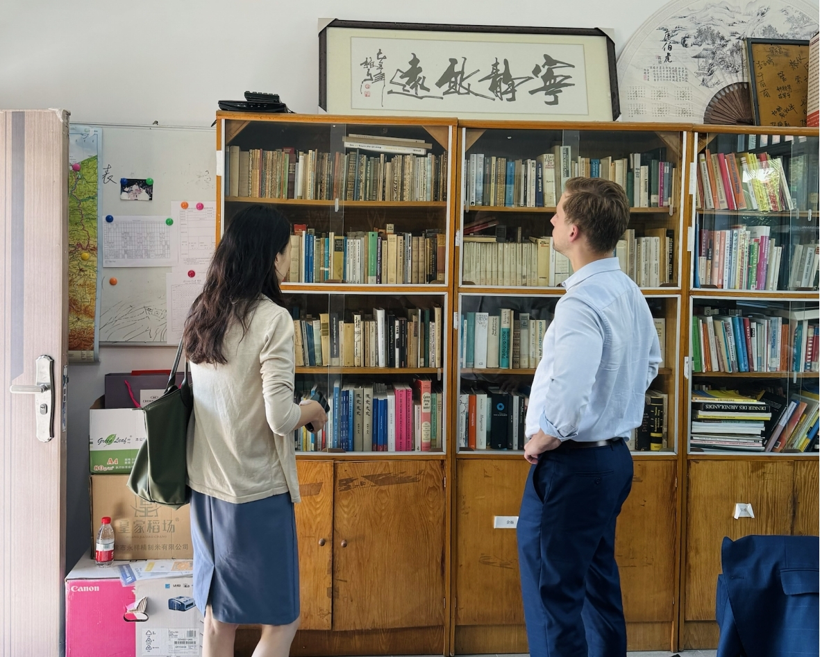 访问伊始,学院副院长卢铭君教授代表学院诚挚欢迎来访客人,同时对DAAD长期以来对德语系办学的支持表达由衷感谢。她表示,DAAD在促进中德学术交流、文化传播和科研合作中具有重要影响力,广外作为首批接受驻校语言专家的高校,已与DAAD有46年的成功合作经验,未来希望双方能够通过更多形式的交流活动,共同推动德语教育与国际合作迈向新高度。卢教授随后还陪同来宾参观了德语系办公室,深入介绍金宝博 与德语系办学特色,并向客人赠送了校级“中德文学关系”科研创新团队成果《青龙过眼——中德文学关系中的“读”与“误读”》和《德语系学生戏剧手册》,同时诚挚邀请欧阳乐先生和李文爱女士参加广外60周年校庆,共襄盛举。