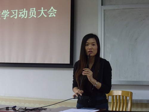 会议开始,先由辅导员向入党积极分子发放党课的学习资料,之后郝建萍书记介绍了一些党课的基本情况和对要参加党课培训的同学们的要求。党课学习在六教报告厅进行,每次党课大约持续90分钟,共有5至6次课时,同学们将分为3个小组,每个小组选定一个负责人,负责考勤和学习讨论。郝书记向同学们提出要求,希望他们能够严格遵守党校的纪律,严格要求自己,并把这一次的党课培训当做一个新起点,新契机,来培养和展现一个更加优秀的自己,同时发扬金宝博