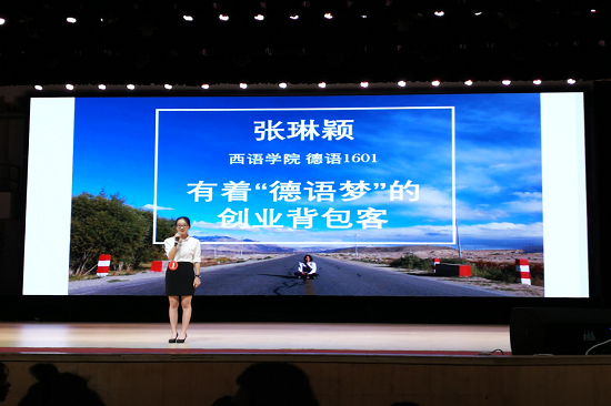 本次评选共分为展示演讲、答辩、大众投票和网络投票四部分,展示演讲时长4分钟,答辩2分钟,成绩一共占总分80%;大众投票占总分的20%,网络投票为附加分。我院2016级德语专业张琳颖同学的展示标签是:有着“德语梦”的创业背包客。她与大家分享了从自己转专业、当背包客到后来参加大学生创业的故事。最终,张琳颖同学顺利被评为“凤鸣岭南十佳青年”。