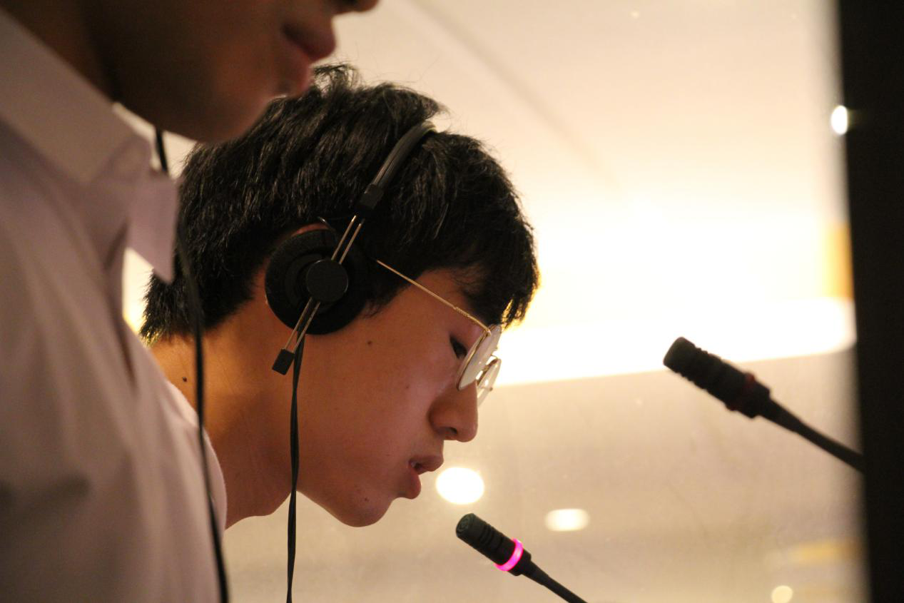 举办的第八届中法跨文化研讨会。易伟告诉记者,为完成学校交给的翻译任务,法语口译的全体师生倾尽全力,用一个多月的时间做准备。“那段时间,我们几乎‘泡’在同传间,为了每一次训练,我们都会在网上查询大量的相关信息,尽可能多地找到将会用到的专业词汇,大量阅读材料,熟悉发言人的成果。为了熟悉讲话人的声音,我们还会反复听发言人的其他发言。正是凭借着这种孜孜不倦、坚韧打磨的精神,会议召开前,我们的同传水平已基本达到职业同传水平,最后较好地完成了会议现场的同声传译任务。”易伟向记者讲述了在会议结束的那一刻,他的发自内心的喜悦,尽管已过去很久,记者仍能从他的表述中感受到奋斗之后收获的成就感,在这个过程中,也让他更加热爱自己所学的专业。