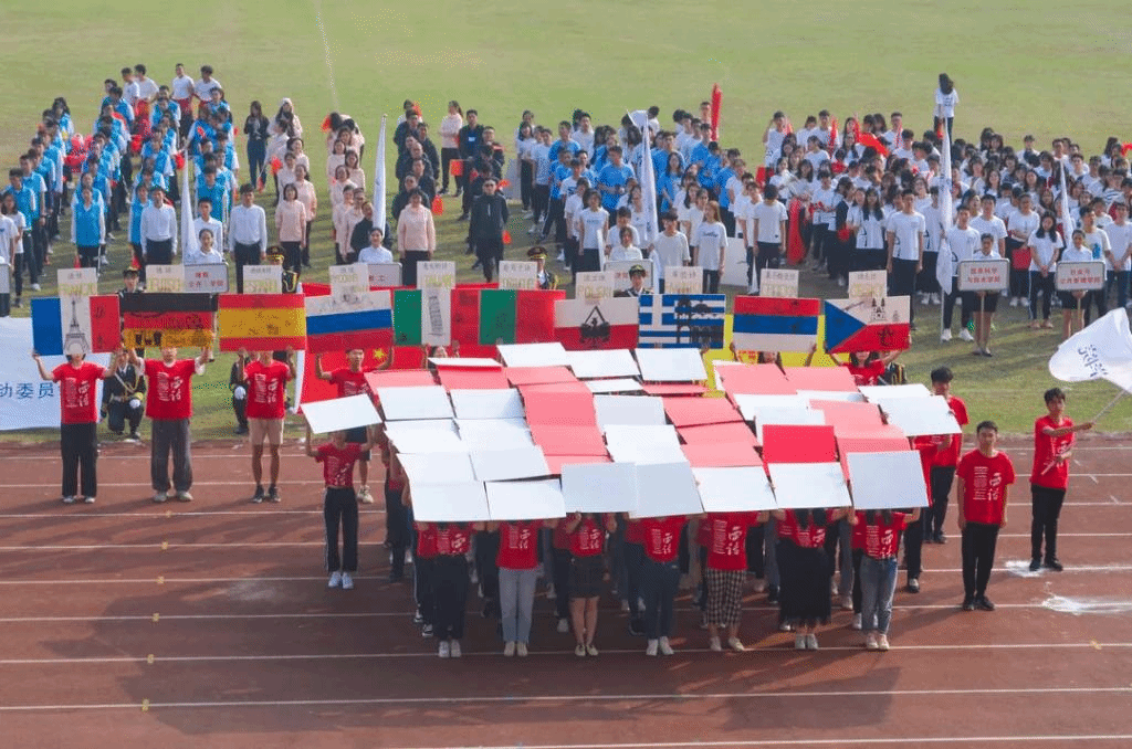2019年运动会在广外南校区运动场上隆重举行。来自南北校区的各学院师生齐聚一堂,共同庆祝这一盛会。金宝博