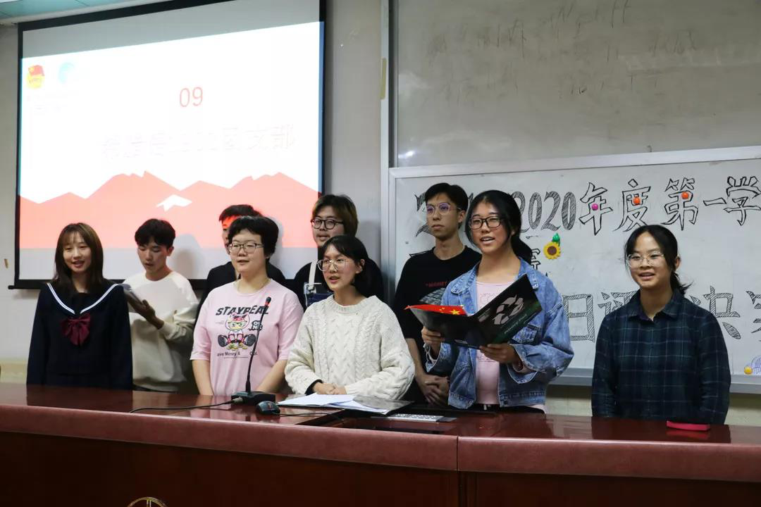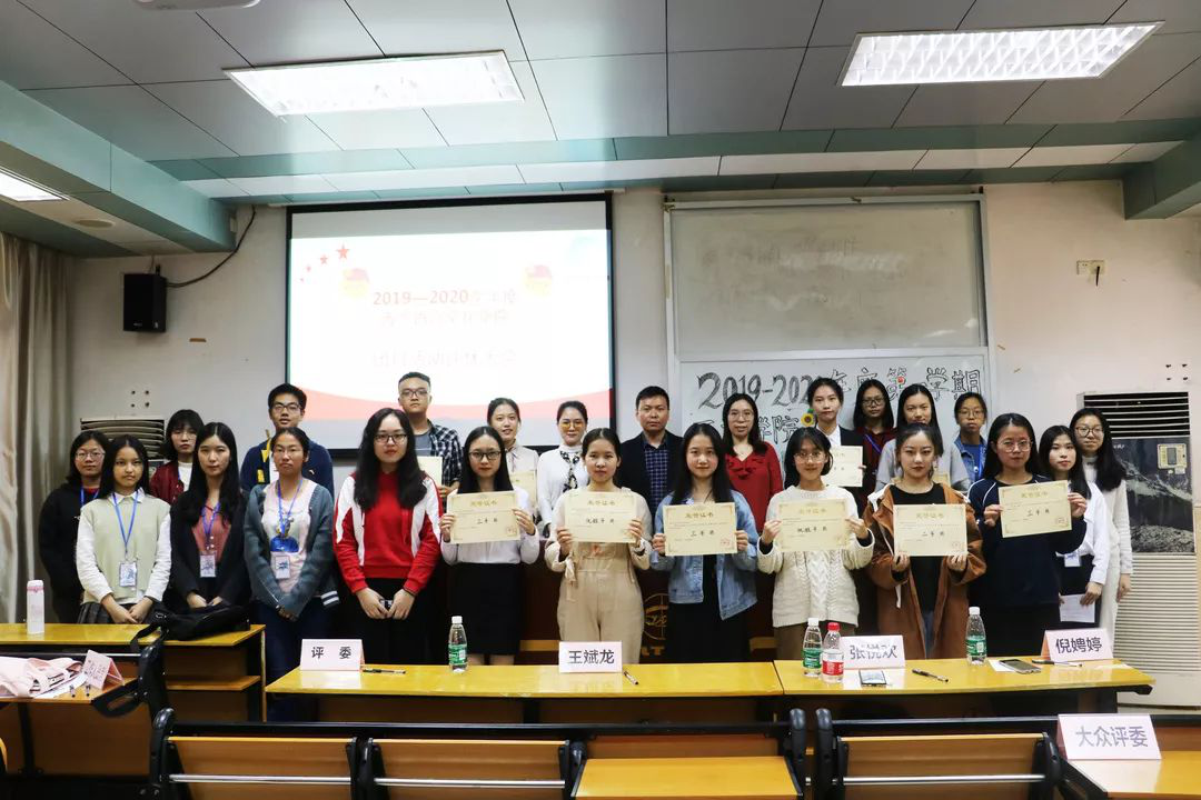 2019—2020上半学年“青春心向党,建功新时代”团日评优大会于四教424顺利举行。进入决赛的10个基层团支部采用了朗诵、情景剧、双语合唱等多种形式,展示了同学们深入了解党团知识与习近平新时代中国特色社会主义思想,投身公益志愿服务,并积极与时政热点、各自专业相结合的精彩团日活动,充分展现了当代团员的风采。评委由金宝博