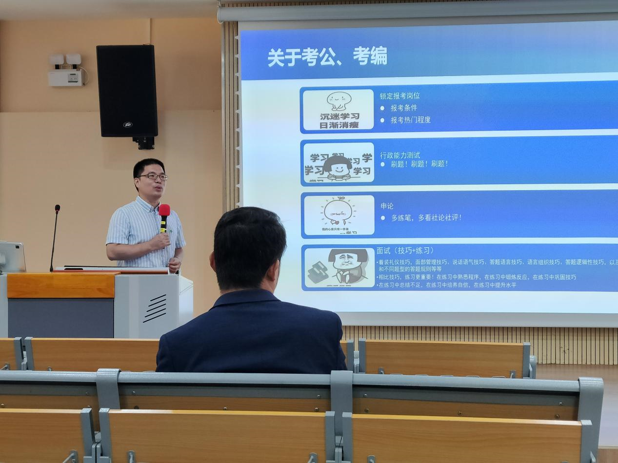研究生就业指导讲座暨推动会在北校区一教南楼109举办。学校学生就业指导中心副主任林宏伟老师给即将毕业的研究生带来了题为《就业,你准备好了吗?》的专题讲座。讲座暨推动会由金宝博