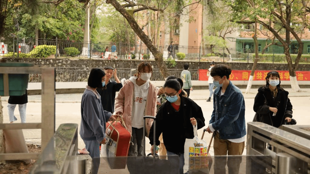 志愿者热心引导同学完成返校程序