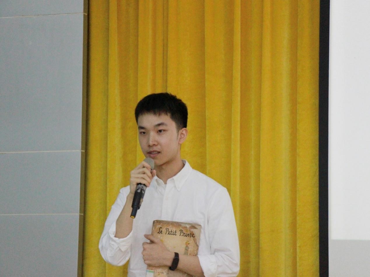第十三位登场的选手法语2102班陈敏行。他朗诵的作品是《小王子》。住在B612号小行星上的小王子,与美丽而骄傲的玫瑰吵架负气出走,辗转多个星球,最后来到地球上,寻找治愈孤独与痛苦的良方。