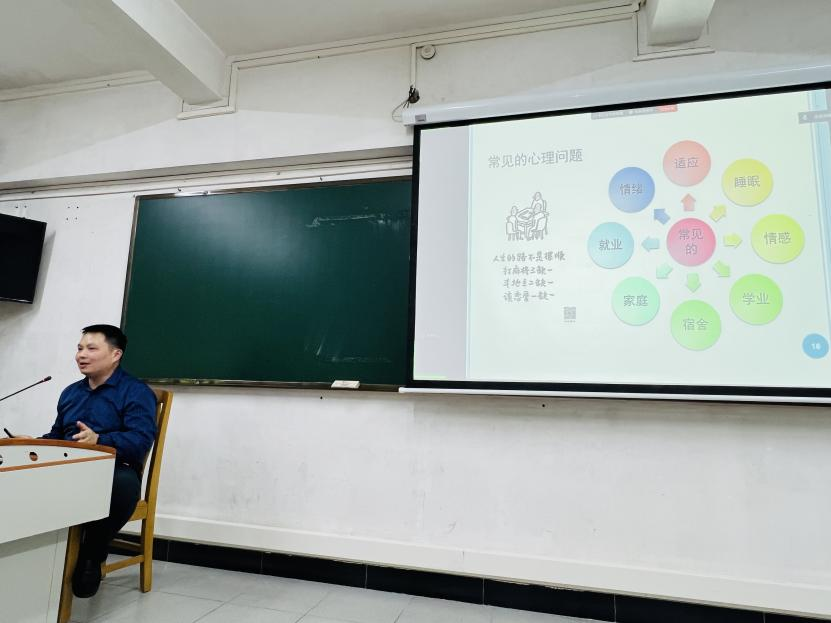 二级心理辅导站“每月一讲,从心开始”心理健康教育专题讲座邀请学校心理咨询中心咨询师曾海宽老师主讲。活动由学院党委委员、二级心理辅导站负责老师倪娉婷主持,各年级40余名学生参与。