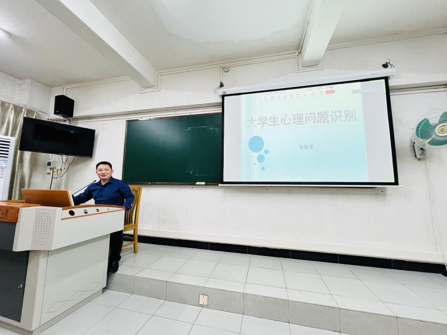 曾海宽老师围绕“大学生心理问题识别”的主题,首先以“怎么区分正常和异常心理”提问,从个人经验、统计学标准、社会适应标准和客观检查标准四个方面分析正常与异常心理的判断标准。接着,对常见的心理障碍如抑郁症、双相情感障碍、广泛性焦虑障碍、恐怖症、强迫症等进行了详细的介绍。最后,曾海宽老师讲解识别心理问题的小技巧,并向同学们介绍了学校心理咨询中心、校外医院、紧急生命线等求助资源。