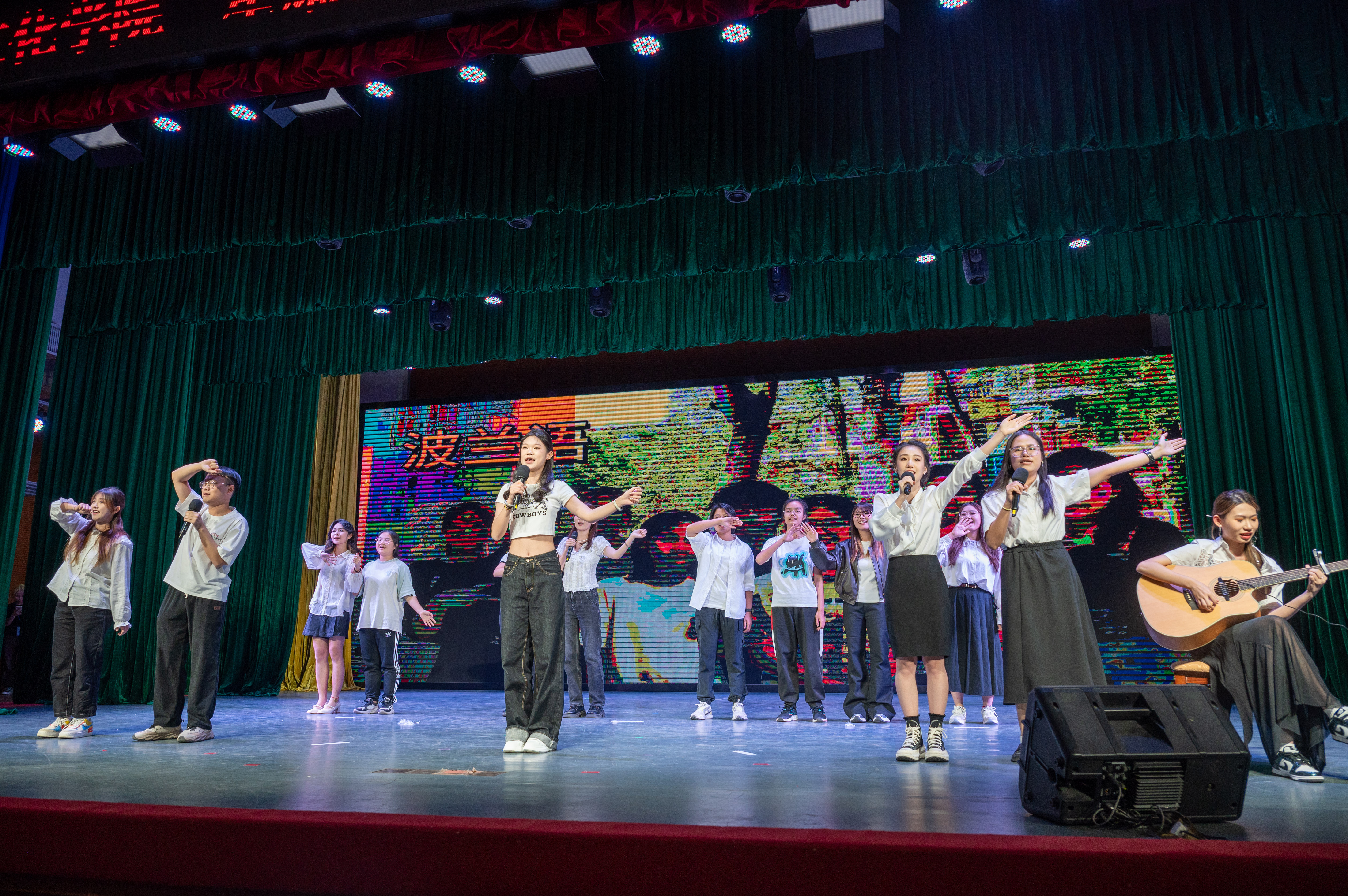 本次晚会分为“奏西韵”、“谱新声”、“共璀璨”三个篇章,寄寓了西语学子对于未来与金宝博