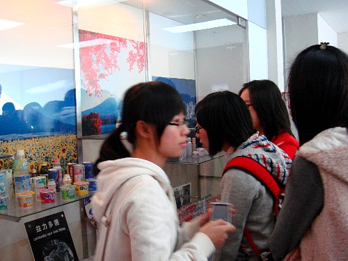 当同学们走进益力多工厂,马上被展览橱窗里的益力多相关产品,如:饮料,化妆品等等吸引了眼球。据了解,益力多的其他产品只在韩国以及日本销售,暂时尚未进军中国。