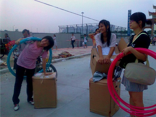 “新起点”团队为趣味运动会进行准备工作