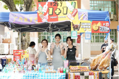 摊位的桂花糖,让全校师生足不出校便能体验世界美食文化。广州法语联盟、南国商金宝博