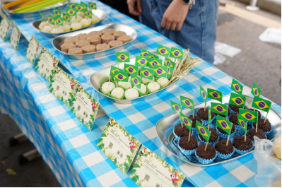 、广州市白云区白云外国语中小学、西语校友会等摊位一同开启欧罗巴美食盛会,精心准备琳琅满目的异国风味美食:从俄语摊位的红肠和列巴、西班牙语摊位的巴斯克蛋糕、法语摊位的法棍,到德语摊位的啤酒和香肠、葡萄牙语摊位的特调果汁,再到中文金宝博