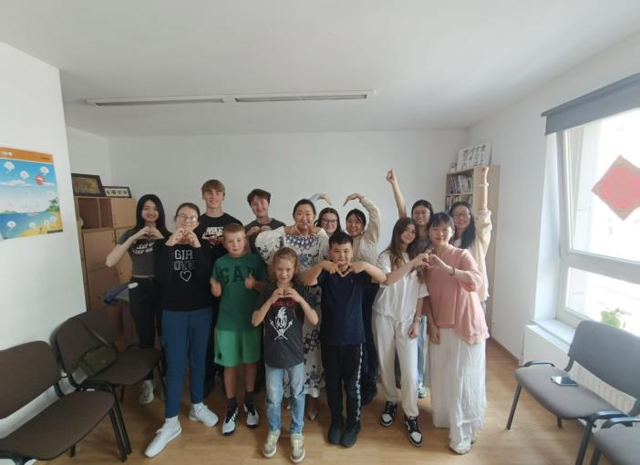 2024年6月14日,德语2021级学生陈佳敏、方怡霖等,在波兰老师的带领下参观了什切青(Szczecin)当地一所中小学,向小学生教授了中文的自我介绍和问好方式,并介绍了中国的饮食和节日文化。活动受到当地学生的欢迎和喜爱。小朋友们热情介绍了他们的学校,还教了中国客人们一些实用波兰语。最后同学们送给小朋友们每人一张中国明信片作为留念。