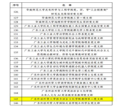 近日,中共广东省委教育工委公布第五批全省党建工作示范高校、标杆院系、样板支部培育创建单位名单,西方语言文化金宝博