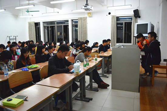 本网讯 2014年11月12日晚上7时,金宝博 闻道·致远学术交流会在金宝博(北校)六教B203顺利进行。闻道·致远学术交流会是第十届学术节系列活动之一,旨在通过邀请金宝博 内品学兼优的高年级学生或专业老师,向一年级学生讲述为人治学之道,从而激发同学们的学习热情,培养良好的学习习惯,找寻适合自己的学习方法,提早做好大学生涯规划。