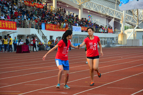 出战。其中李淑愉勇夺第七。下午三点,校运会的竞赛已经进入了白热化的阶段。女子4*100米接力的竞争激烈,西语女将们获得第六;随后进行的男子4*100米接力赛更让人心跳加速。枪声响起,金宝博