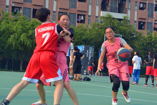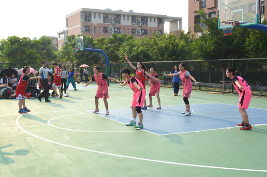 本网讯 2015年4月16日下午4点,广外杯女篮小组赛在烈日晴空下展开角逐,本次比赛由西语女篮对阵公开女篮。
