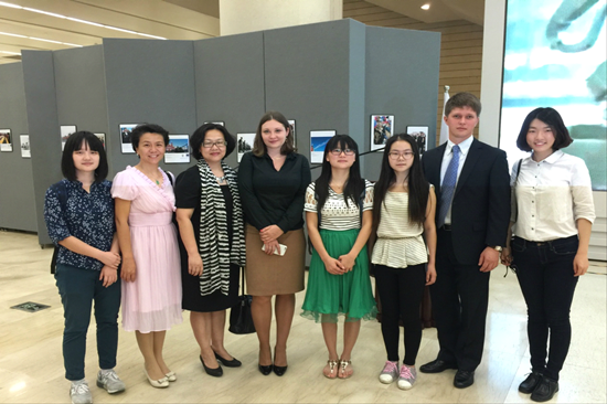 ,由俄罗斯联邦驻广州总领事馆主办的“俄罗斯卫国战争暨世界反法西斯战争胜利70周年摄影展”在广州图书馆开幕。金宝博俄语系师生应俄罗斯驻广州总领事米哈伊尔•梅德