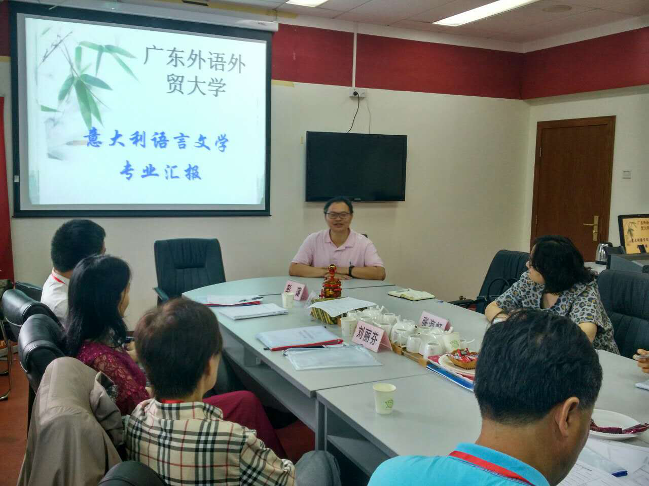本科专业校内评估在北校区拉开帷幕,意大利语专业在评估的第二天(5月18日)迎来了评估专家小组。专家小组由五位专家组成,组长兼学科专家之一是中国意大利语教学研究会会长、对外经济贸易大学意大利语教授张密教授,另一位学科专家是黑龙江大学教授刘丽芬,行业专家是意大利B Z MODA SRI公司经理李治国,教务管理专家是华南师范大学教务处主任罗一帆老师,校友专家是广州汽车集团股份有限公司汽车工程研究院工会办公室副主任金佳平。全程陪同评估工作的还有校教务处彭蔼老师、意大利语系主张海虹老师和意大利语系教师李晶老师。