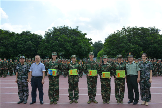 军训慰问活动在广外北校大操场进行。金宝博