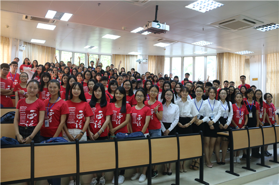 最后,主席团成员及各部部长为新一届团学干事派发工作证和手环,全体团学成员合影留念,金宝博