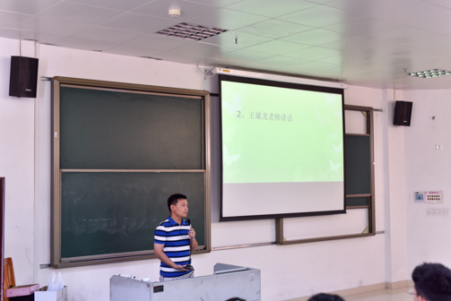 随后,团委书记王斌龙老师发表讲话。他表示,当今社会经济环境严峻,竞争日益激烈,大学生们要在社会中脱颖而出,就要与优秀的人为伍,努力提升自我。对此,他希望团学干事们能够注意自身形象,发挥团学干事的模范作用;他还希望团学干事们能够在团学工作中经受锻炼,成为优秀的人,拥有光明前程。