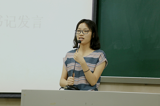 展示过后,组织部新干事进行了简单的自我介绍。而后,团委副书记何敏怡作出讲话,她鼓励各位团干勇担责任、促进班级团结并且通过努力呈现出各自班级与学院的良好精神面貌。