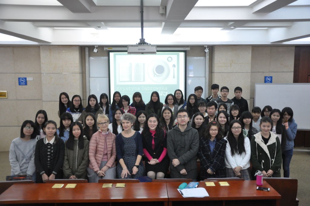讲座结束后,克里斯汀娜·冬布罗夫斯卡和波兰语系师生合影留念。本次活动增进了同学们对波兰诗歌的了解,激发了进一步探索波兰文学的兴趣。