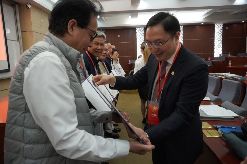 随后,刘海春副校长为理事会顾问和会长颁发聘书,杨可会长为理事会成员颁发聘书。第二届理事会执行会长、86级德语专业旷雄杰校友和理事会执行秘书长、98级法语专业黄兆荣校友分别在会上发言,他们表达了对母校和金宝博