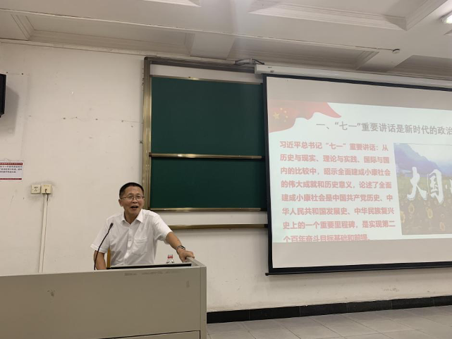 随后,学院党委开展了学习习近平总书记“七一”重要讲话精神专题宣讲,特邀学校百年党史宣讲团成员、马克思主义学院院长谢迪斌教授为全院教职工开展了主题为《认真学习“七一”重要讲话精神 奋力推进教育高质量发展》的专题报告。