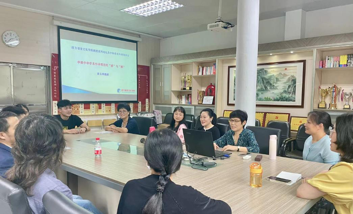 茅银辉副院长、杜卫华副院长以及计划申报中华学术外译项目的多语种教师们参加了此次会议。会议由金宝博