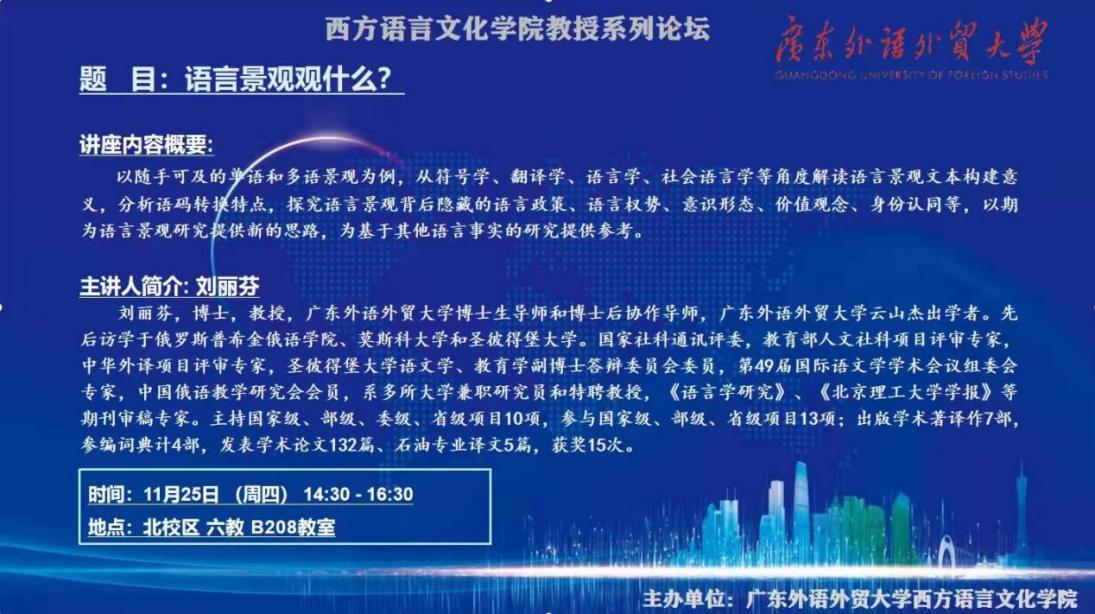 俄语系刘丽芬教授主讲《语言景观观什么》。金宝博