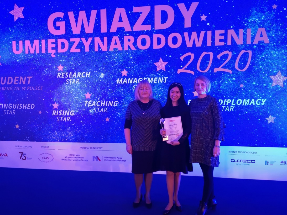 近日,陈意雨获评2022年波兰最佳留学生特别奖。陈意雨系广外招收的第一批本科生,本科时曾获国家留基委奖学金赴雅盖隆大学交换学习一年,毕业后,又赴雅大继续攻读法学专业硕士。学习期间,陈意雨曾获雅盖隆大学项目资助,赴荷兰海牙国际法学院、德国欧洲法学院参加暑期课程。今年,她还将代表雅大参加在法国巴黎举办的国际私法模拟法庭竞赛,其团队合作能力和社会责任感得到了大家的一致认可。学业之外,陈意雨还积极运用所学专业知识为波兰税务机关、法院等国家行政机构提供翻译服务,并作为雅盖隆大学克拉科夫孔子学院的一名海外志愿者,积极致力于在波兰教授汉语和推广中国传统文化,参与相关文化活动的组织工作。