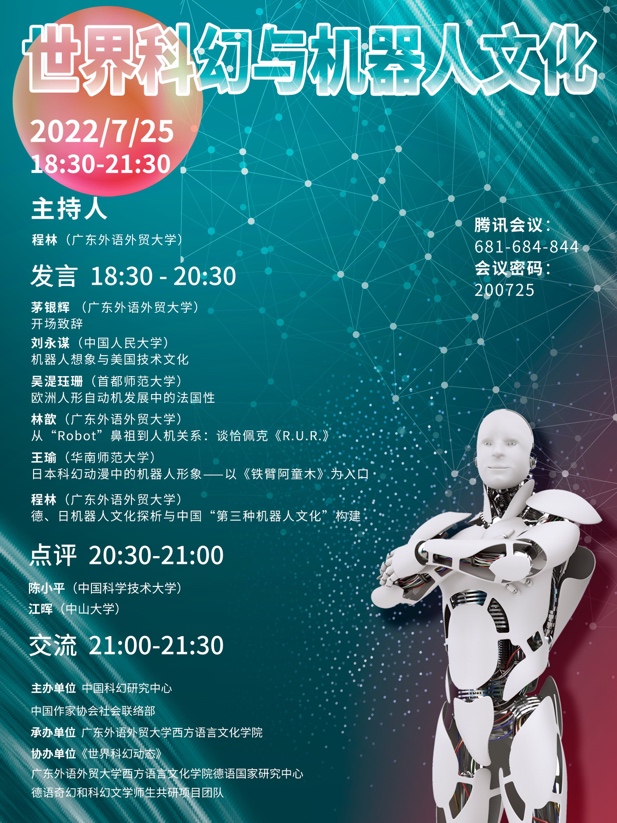 本网讯 2022年7月25日晚,“世界科幻与机器人文化”沙龙在线上举办。本次沙龙由中国科幻研究中心和中国作家协会社会联络部主办,金宝博
