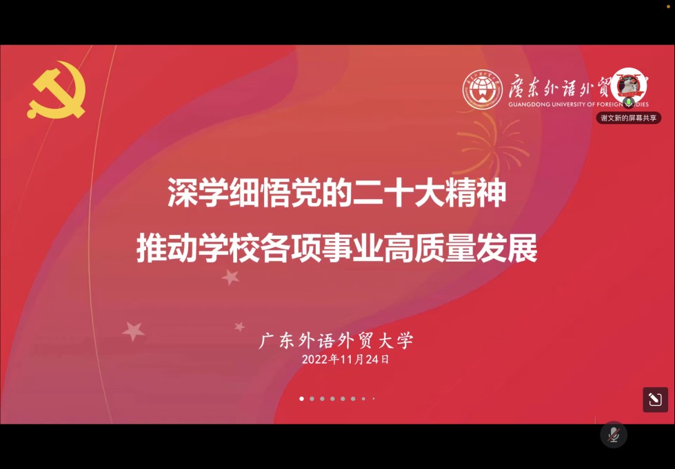 也将全面贯彻党的二十大精神,落实立德树人的根本任务,推进国际化特色鲜明的高水平大学建设,将学习成效转化为推动学校事业高质量发展的强大动力。